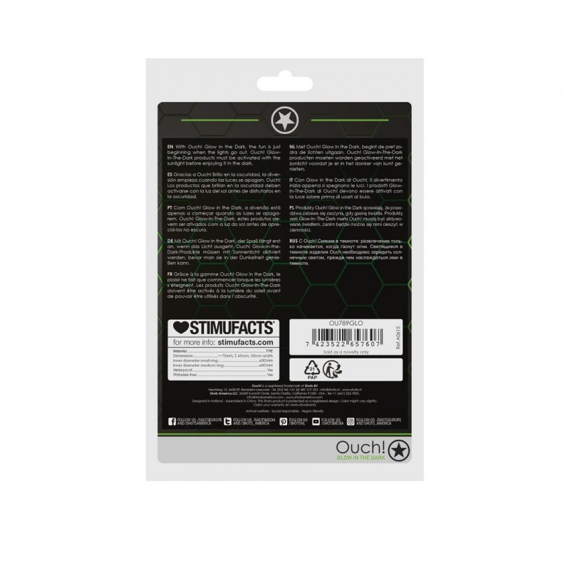 ANEL PARA O PÉNIS E TESTICULOS FLUORESCENTE GLOW IN THE DARK OUCH!
