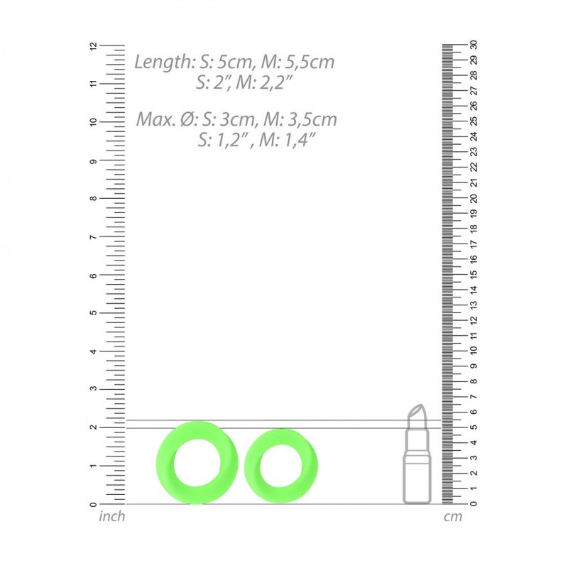 CONJUNTO DE 2 ANÉIS PARA O PÉNIS GLOW IN THE DARK OUCH!