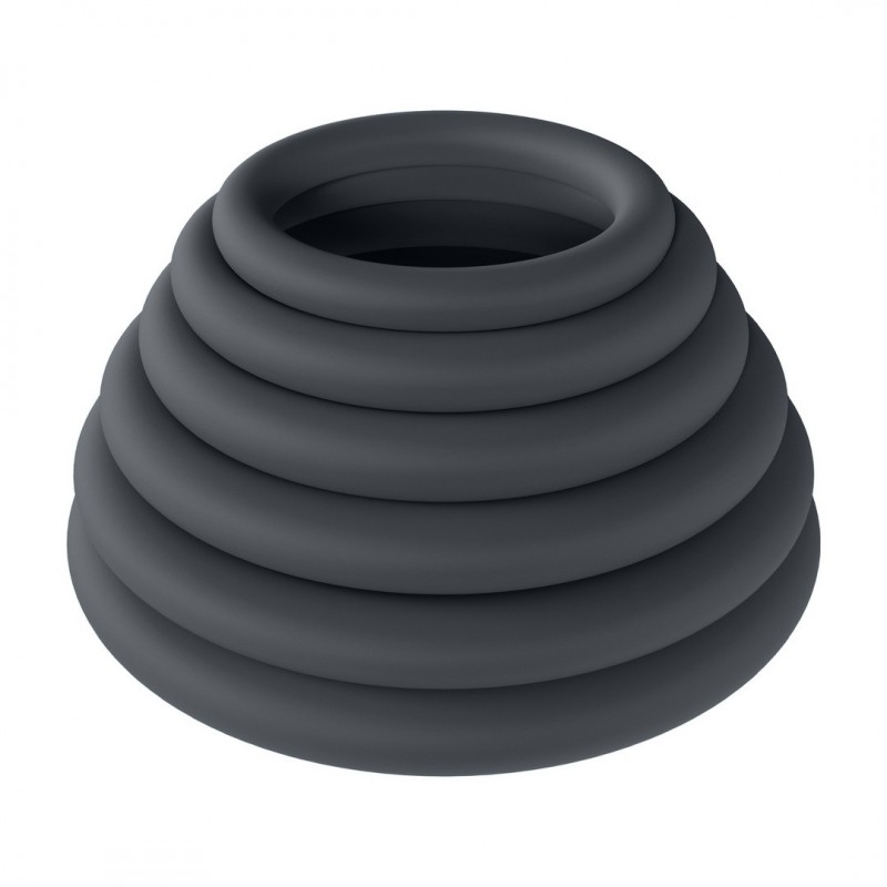 Conjunto de seis anéis para o pénis de silicone em vários tamanhos, para ajuste personalizado e prazer versátil.