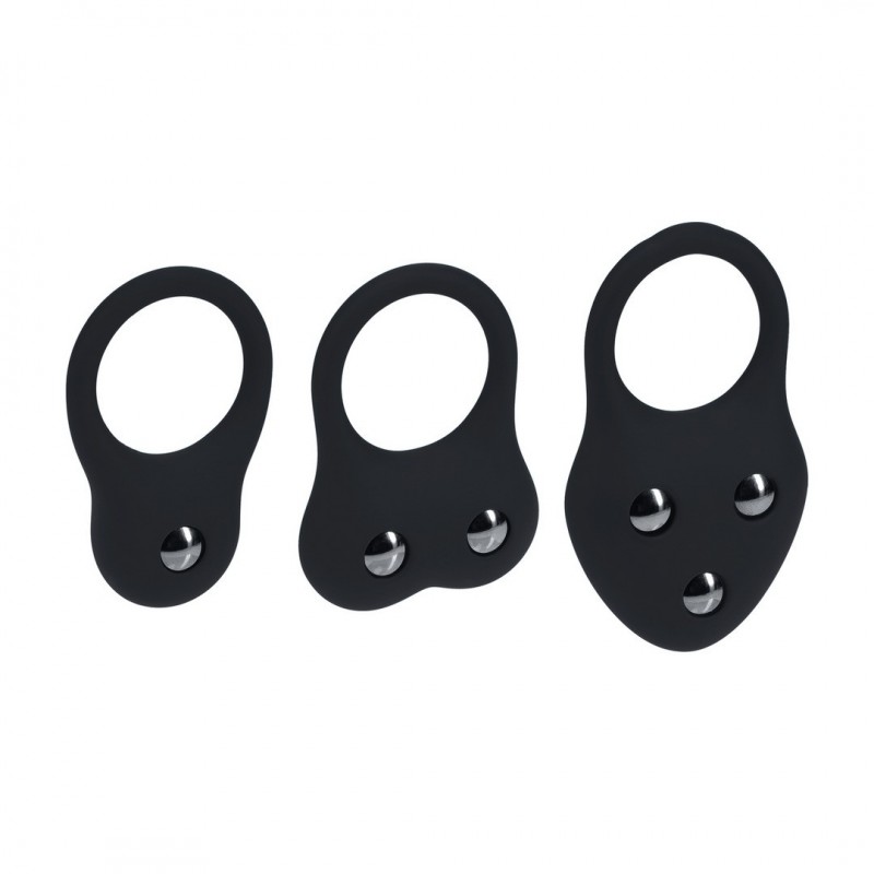 Suba de nível com intensidade adicional. Este conjunto de anéis penianos com peso da coleção LEVELZ combina a aderência firme do silicone premium com um peso interno que oferece pressão extra e uma sensação mais firme e completa.