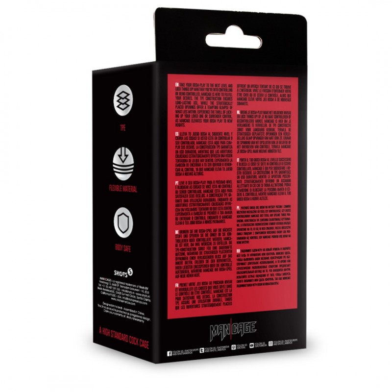 A estrutura da jaula ManCage foi meticulosamente concebida com aberturas estrategicamente posicionadas, que proporcionam um vislumbre sedutor do que está no interior, aumentando o desejo e a excitação tanto de quem controla como de quem é controlado. Além de serem decorativas, estas aberturas são também funcionais, permitindo uma exploração mais intensa das suas fantasias.