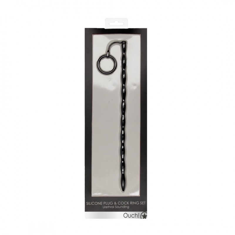 CONJUNTO DE SONDA DE URETRA COM ANEL PENIANO DE SILICONE PRETO OUCH!