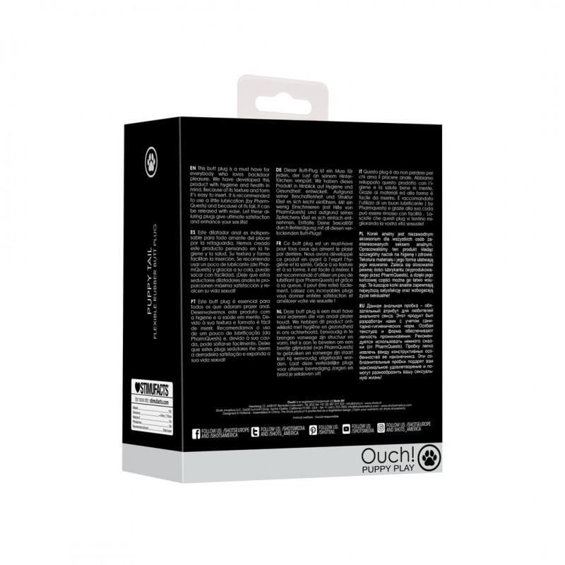 O Plug Anal com cauda Puppy Play da Ouch! foi criado para intensificar o prazer no jogo de papéis, oferecendo uma inserção fácil e confortável graças à sua textura suave e forma ergonómica.