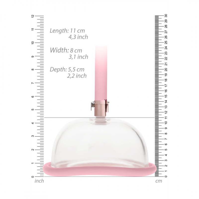 A ventosa de acrílico de qualidade industrial pode ser facilmente separada da bomba, utilizando o sistema de clipe simples, mantendo o clitóris aspirado dentro da ventosa.