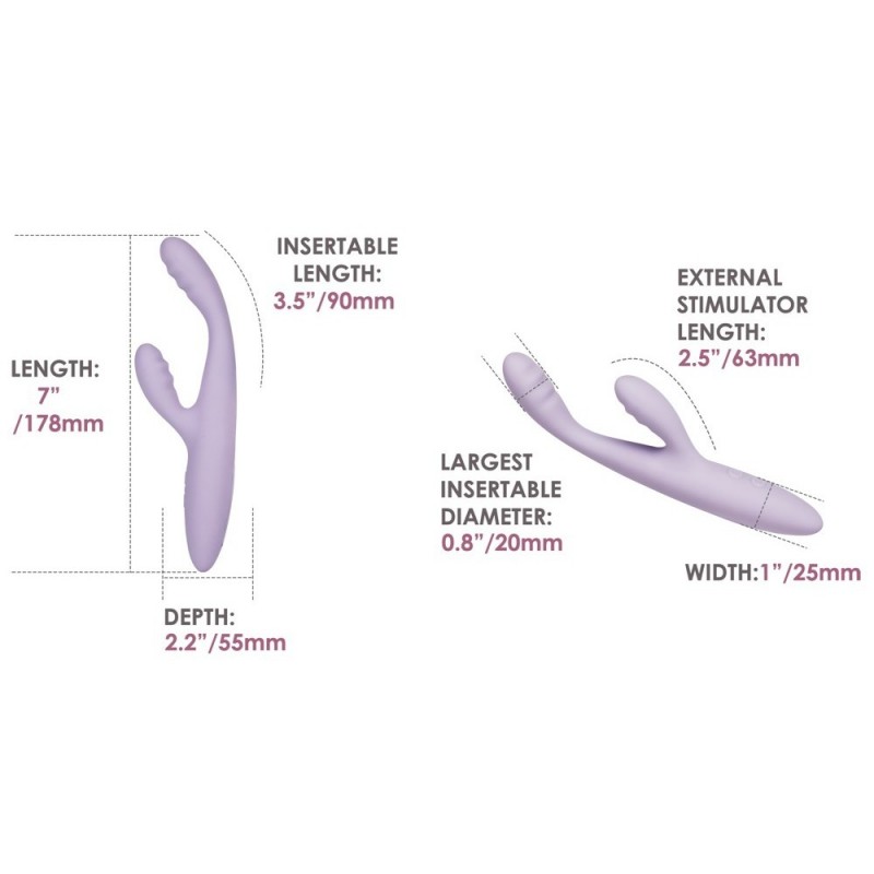 Dispõe de 5 modos de vibração, cada um com 5 níveis de intensidade, garantindo grande variedade na estimulação dupla. A função de aquecimento até 38 °C aquece o silicone aveludado até uma temperatura confortável e próxima da corporal. A função de memória guarda o último modo utilizado antes de desligar. O prático bloqueio de viagem permite um transporte e armazenamento discretos.