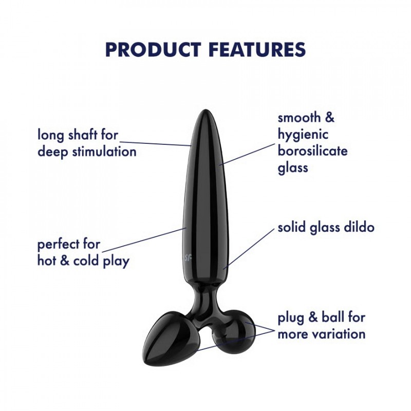 DILDO DE VIDRO COM PLUG TRIPLE CRYSTAL 1 PRETO SATISFYER
