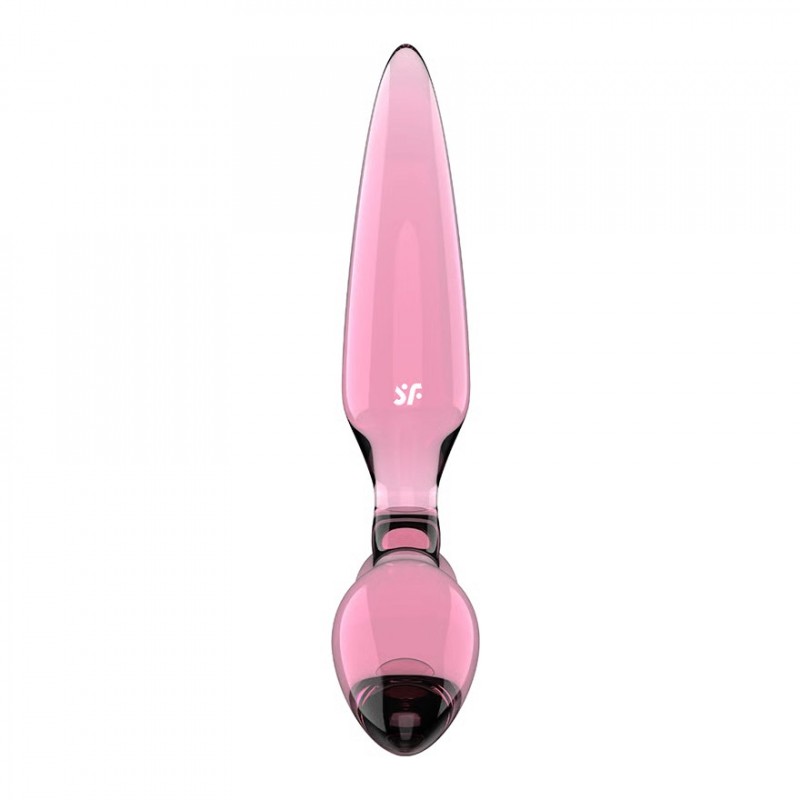 DILDO DE VIDRO COM PLUG TRIPLE CRYSTAL 2 ROSA SATISFYER