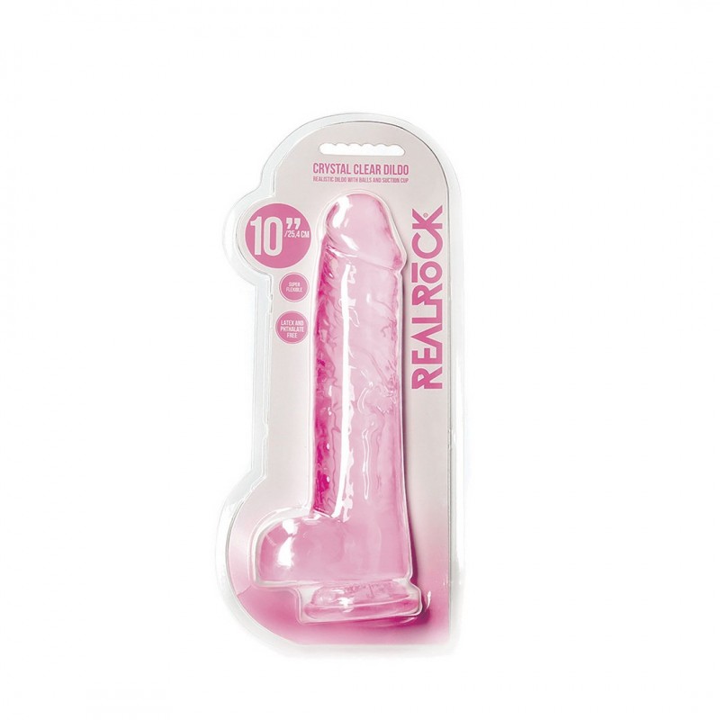 DILDO REALISTA COM TESTÍCULOS CRYSTAL CLEAR10 /25,4 CM ROSA REALROCK
