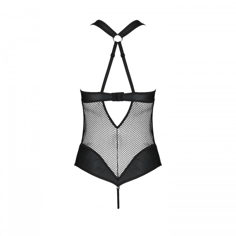 A sua combinação de couro e malha abraça o corpo de forma envolvente, destacando-se pelas copas reforçadas que oferecem suporte sem comprometer a sensualidade.