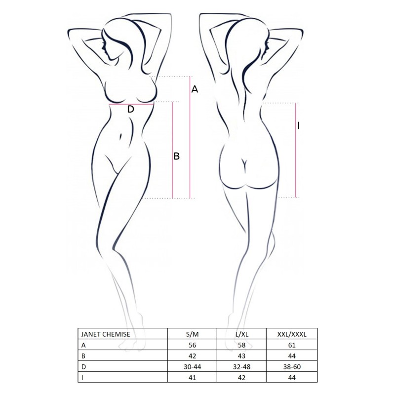 A camisa de noite Janet é uma peça sedutora e sofisticada, confecionada em tule transparente e adornada com rendas finas, que lhe conferem um toque de sensualidade e elegância.