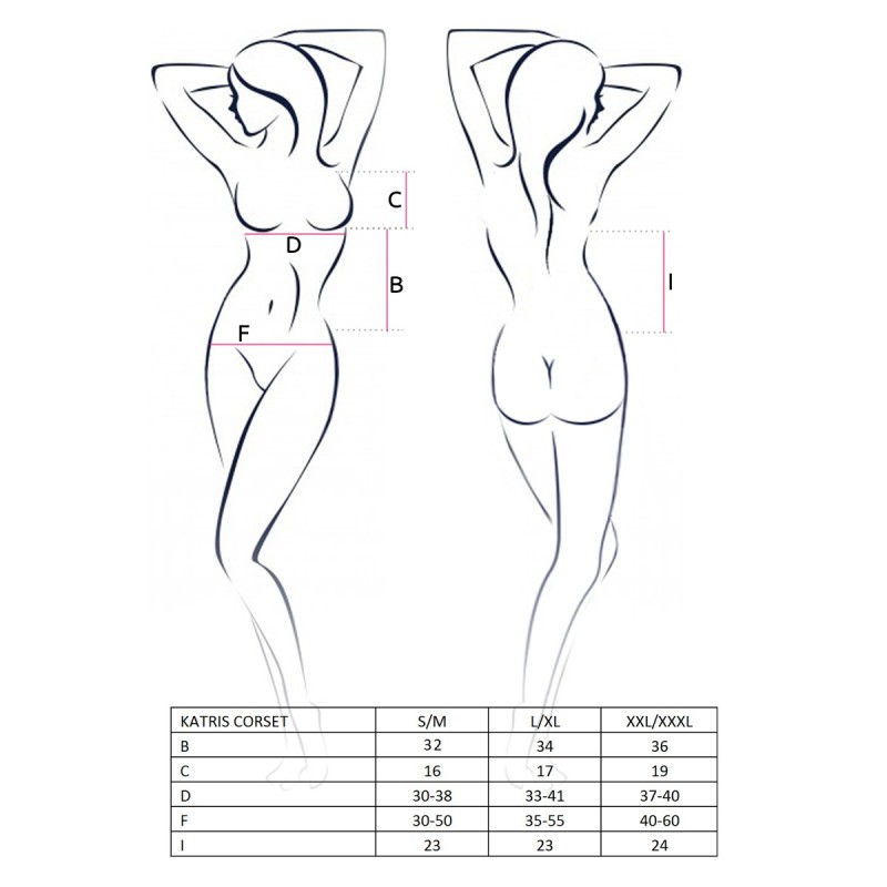 O corpete único da marca PASSION destaca-se pelo seu design sensual e pela possibilidade de ajuste. As alças elásticas ajustáveis nos ombros proporcionam um ajuste confortável e personalizado, enquanto as fitas e tiras que cobrem o busto adicionam um toque de mistério e elegância. Na parte frontal, o corpete apresenta um design estilo espartilho, permitindo ajustes personalizados e conferindo-lhe um toque adicional de sensualidade.