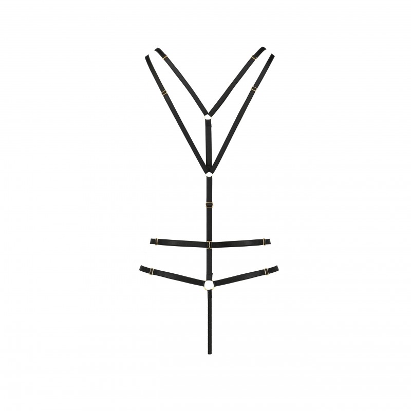 O body Meggy da Devil Collection da Passion é uma peça ousada e sofisticada, com um design inovador que realça as curvas femininas. Os detalhes dourados e as tiras estratégicas tornam-no perfeito para mulheres que desejam destacar-se com sensualidade e elegância.