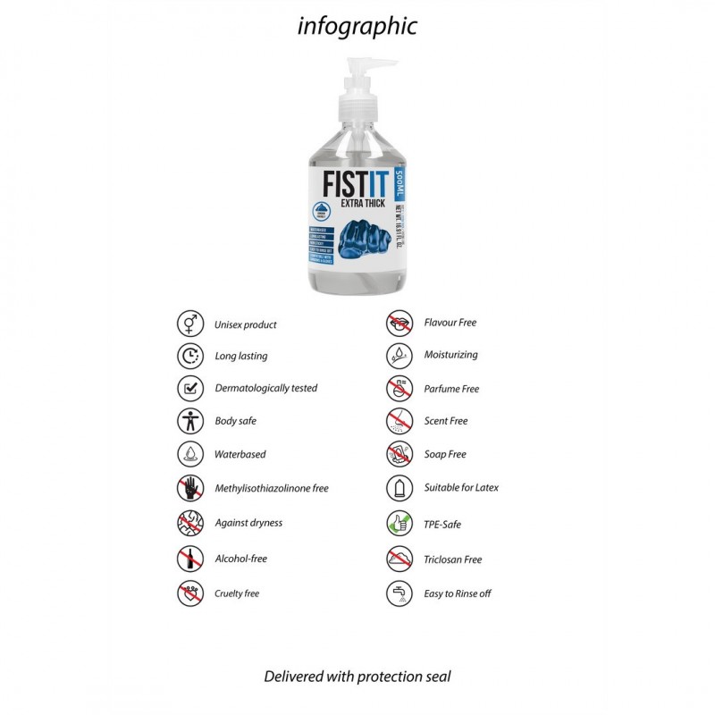Com uma fórmula à base de água, este lubrificante foi especialmente desenvolvido para o fisting, sendo mais espesso que o FIST IT, proporcionando uma experiência de prazer intensificada, sem desconforto.