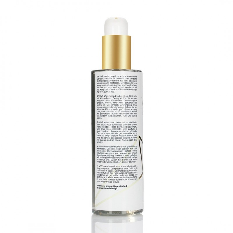 VIVE waterbased lube é um lubrificante à base de água. Adequado para utilização com preservativos de látex e para todos os tipos de pele.
