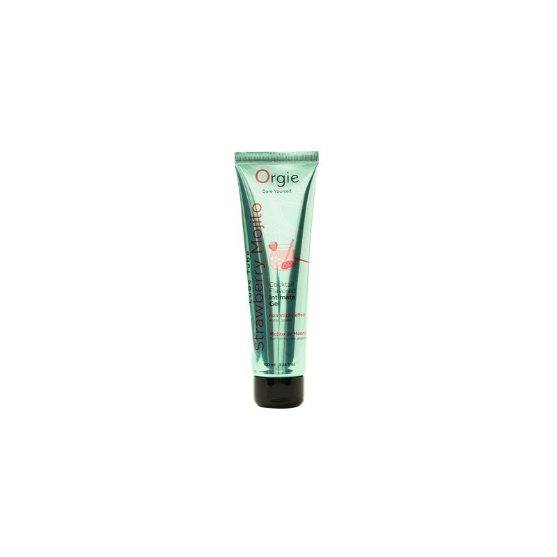 Gel íntimo à base de água com sabor e aroma de cocktail Mojito de Morango. De longa duração, não pegajoso, fácil de limpar e lavar. Sem álcool, cheio de sabor.